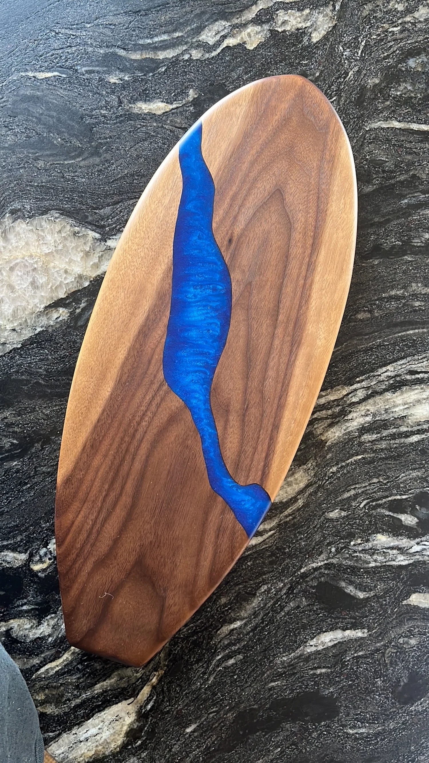 Mary creates an eclectic and fun mix of pieces using wood and resin, as well as a popular line of upcycled flannel shirts. Her attention to detail and fine crafstmanship shows through in her work, which is inspired by the local surfing community. Retro vibes, and the simplicity of the coastline show through in her work as well.